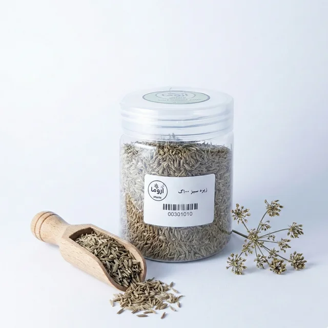 زیره سبز، عطرِ اصیل پلوهای ایرانی و راز لاغری شکم است. این دانههای کشیده و معطر، یکی از اجزای اصلی ادویه کاری و پلویی هستند. اگر میخواهید برنجتان سردی نداشته باشد، غذایتان زود هضم شود و نفخ نکنید، زیره سبز بوجاری شده «آروما» (محصول مزارع خراسان یا کرمان) چاشنی سلامت سفره شماست.