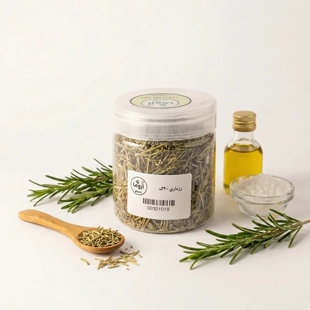 رزماری (اکلیل کوهی)، عطرِ مدیترانه و بهترین دوستِ مرغ و گوشت است. این برگهای سوزنی و معطر، بویی شبیه به کاج و چوب دارند و قویترین ادویه برای گرفتن بوی زهم هستند. اگر میخواهید استیک، مرغ بریان یا سیبزمینی تنوری شما عطری مدرن و رستورانی داشته باشد، برگ رزماری خشک و سبز «آروما» انتخابی حرفهای است.