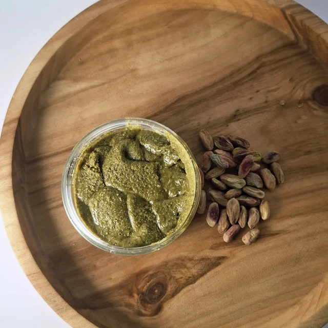 کره پسته، اشرافیترین و خاصترین عضو خانواده کرههای گیاهی است که از مغز پسته درجه یک ایرانی تهیه میشود. این محصول دارای رنگ سبز اشتهاآور و عطری بینظیر است که هوش از سر میبرد. در فرآیند تولید کره پسته خالص، معمولاً هیچگونه روغن یا شکر اضافی افزوده نمیشود و تمام چربی آن متعلق به روغن طبیعی خود پسته است.